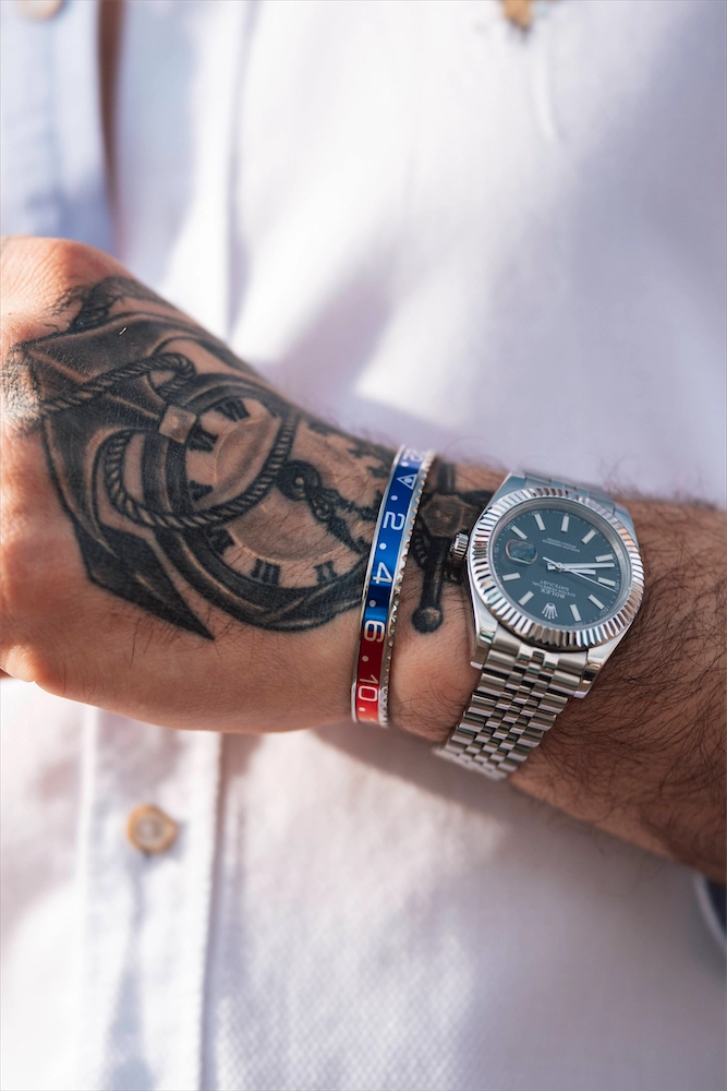 Oyster Pepsi, inspired by the iconic Pepsi logo. A stunning blue and red bracelet that combines timeless elegance with a pop of color.